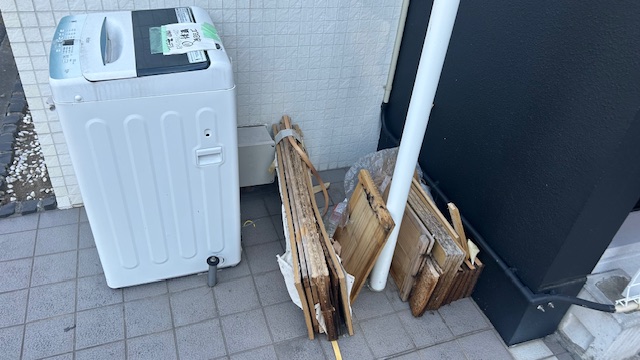 洗濯機と、木材などを回収しました。洗濯機は家電リサイクル対象品目なので、定められた方法で処分致します。